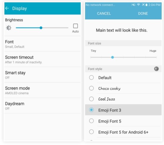 - گوشیهای سامسونگ: به بخش Settings و سپس Display مراجعه کرده و گزینه Fonts را انتخاب کنید.