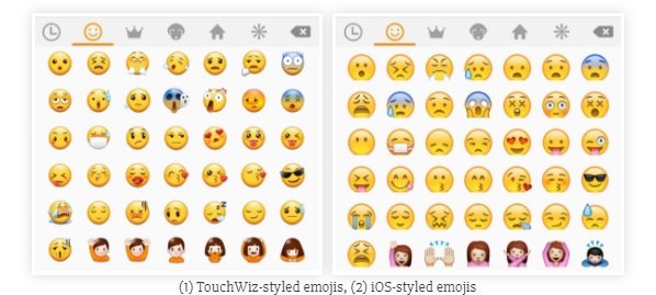 به همین سادگی اضافه کردن اموجیهای آیفون به گوشی سامسونگ یا اچتیسی شما تکمیل شده است. برای استفاده از اموجیهای آیفون کافیست که در حین تایپ با کیبورد مجازی گوشی آیکون اموجی را لمس کنید. در این شرایط دو لیست متفاوت از اموجیها نمایان میشوند که یکی از آنها اموجیهای اصلی گوشی اندرویدی شماست و دیگری لیست اموجیهای آیفون را در بر میگردد. در عکس فوق میتوانید تفاوت مابین اموجیهای آیفون و یک گوشی اندرویدی سامسونگ را مشاهده کنید.