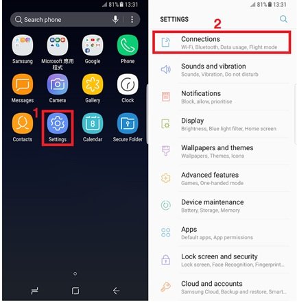 گام اول، در گوشی اندرویدی (سامسونگ) به بخش Settings بروید. اکنون گزینه Connections را انتخاب کنید.