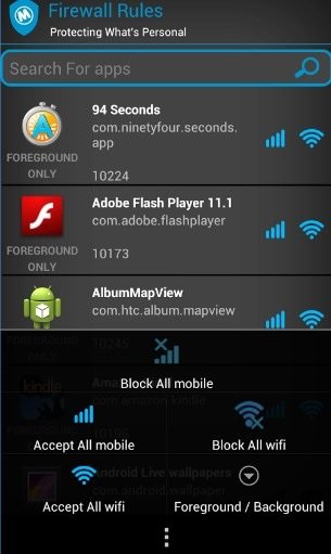 گام سوم، اکنون فهرستی از برنامههای کاربردی که روی گوشی شما نصب شدهاند را مشاهده میکنید. در مقابل هر کدام از این برنامهها دو گزینه وجود دارد. یکی از این گزینهها اجازه دسترسی به وایفای و دیگری اجازه دسترسی به اینترنت موبایلی در پسزمینه دستگاه را به برنامه کاربردی تخصیص میدهند.