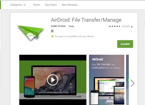 مرحله اول، باید اطمینان حاصل کنید که ارتباط وایفای میان کامپیوتر و اندروید به درستی کار میکند. پس از اطمینان از این موضوع برنامه Airdroid را از فروشگاه گوگل پلی دانلود کرده و نصب کنید.
