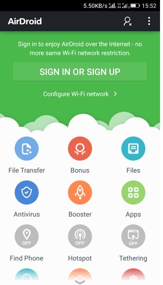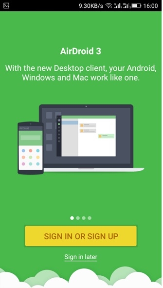 مرحله دوم، اکنون باید برنامه AirDroid را باز کنید. در این حالت پیغامی مبنی بر ورود یا ثبت نام ظاهر میشود. در این مرحله میتوانید اینکار را انجام داده یا گزینه Sign in را انتخاب کنید.