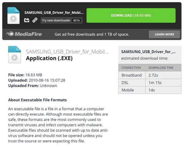 1. روی کامپیوتر شخصی درایورهای سامسونگ را دانلود و نصب کنید.
