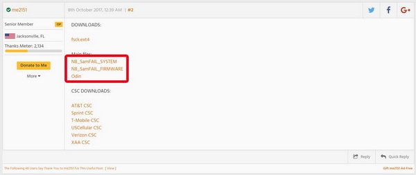 2. ما به فایلهای SAMFAIL System, SAMFAIL Firmware و Odin نیاز داریم. آنها را از این صفحه از سایت xda دانلود و روی دسکتاپ خود از حالت فشرده خارج کنید.