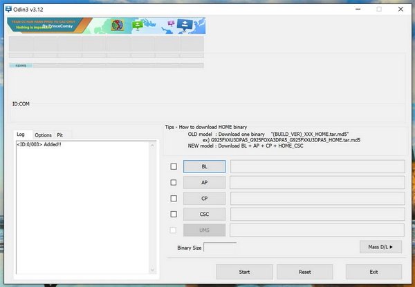 10. در اپلیکیشن Odin روی دکمه Reset کلیک کنید.