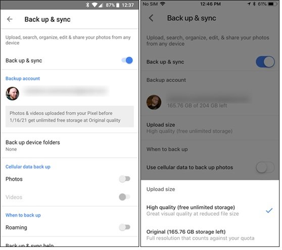 نکتهای که لازم است به آن اشارهای داشته باشیم این است که شما برای دسترسی نامحدود به منظور ذخیرهسازی تصاویر باید به گوگل اجازه دهید تا تصاویر شما را فشرده کند. در نتیجه به جای آنکه تصاویر شما با همان کیفیت اصلی ذخیره شوند آنها با بالاترین کیفیت ممکن فشرده شده و ذخیره میشوند. نگران نباشید، عملکرد الگوریتم فشردهسازی گوگل خوب بوده و به سختی میتوانید تفاوت میان نسخه اصلی و فشرده شده را پیدا کنید.