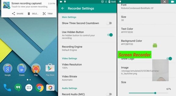 Screen Recorder یک برنامه ضبطکننده کامل است از صفحهنمایش گوشیهای اندرویدی است که به شکل کاملا رایگان و بدون نمایش تبلیغات در اختیار شما قرار دارد. این برنامه روان بوده و اجازه میدهد از هرگونه فعالیتی روی صفحهنمایش گوشی اندرویدی خود فیلمبرداری کنید. اضافه کردن لوگو یا متن موردنظرتان به فیلمهای ضبط شده از ویژگیهای شاخص این نرمافزار است.