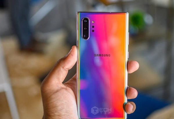 دوربین اصلی در قاب پشتی گوشی و در قاب مخصوص دوربین قرار دارد که مجهز به چار لنز است. سه عدد از این لنزها داخل قابل مخصوص دوربین قرار دارند و لنز چهارم در کنار این قاب قرار دارد که لنز Time of Live نام دارد. لنز اصلی مجهز به حسگر 12 مگاپیکسلی است و مجهز به OIS است. لنز فوق مجهز به دهانه دیافراگرم متغیر است. لنز دوم تله فوتر نام دارد و برای بزرگنمایی دوبرابری اپتیکال استفاده میشود و مجهز به حسگر 12 مگاپیکسلی است و همانند لنز قبلی مجهز به OSI است. لنز دوم اولترواید است که مجهز به حسگر 16 مگاپیکسلی است. عکسهای گرفته شده با دوربین اصلی فاقد هرگونه نویز هستند و شفافیت رنگها در تصاویر گرفته شده مثال زدنی است. جزییات به خوبی در تصاویر دیده میشوند. دوربین نوت 10 پلاس در شب نیز عکسهایی با کیفیت بالا تهیه میکند و کمترین نویز ممکن را در عکسها قرار میدهد. یکی دیگر از قابلیتهای جالب نوت 10 پلاس ویژگی Auto Zoom است.