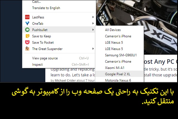 گاهی اوقات در حال مطالعه یک صفحه وب روی مرورگر کروم در کامپیوتر شخصی هستید اما میخواهید صفحهای که در حال مطالعه آن هستید را به گوشی هوشمند خود منتقل کنید. راهکارهای مختلفی برای این منظور وجود دارند...