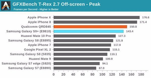 در بخش پردازش گرافیکی هم عملکرد Galaxy S9 به هیچ وجه به پای تراشه A11 اپل نمیرسد؛ با این وجود، احتمالا کاربران مشکلی با آن نداشته باشند.