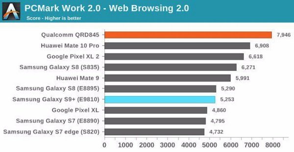 همان طور که میبینید، به طرز غیر قابل باوری عملکرد Galaxy S9+ در بسیاری از موارد حتی به Galaxy S8 هم نمیرسد! در حالی که ما عادت داشتیم تراشههای سامسونگ را در آزمونهای فنی بالاتر از همتایان کوالکامی خود ببینیم، اما امسال مشخص نیست به چه دلیلی عملکرد این گوشیها عقبگرد داشته است.