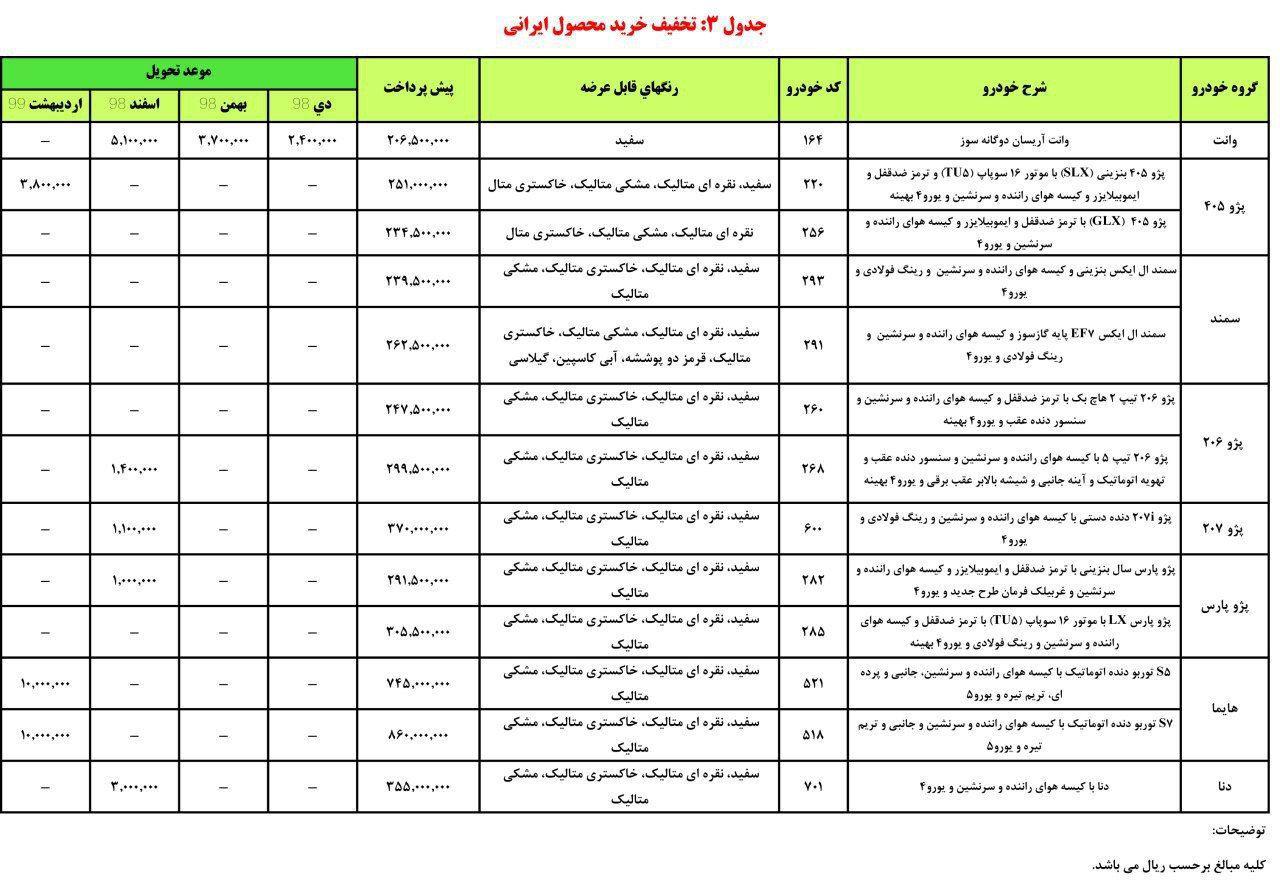 جدول شماره 3 شرایط فروش و پیشفروش ایرانخودرو بمناسبت دهه فجر - بهمن 97