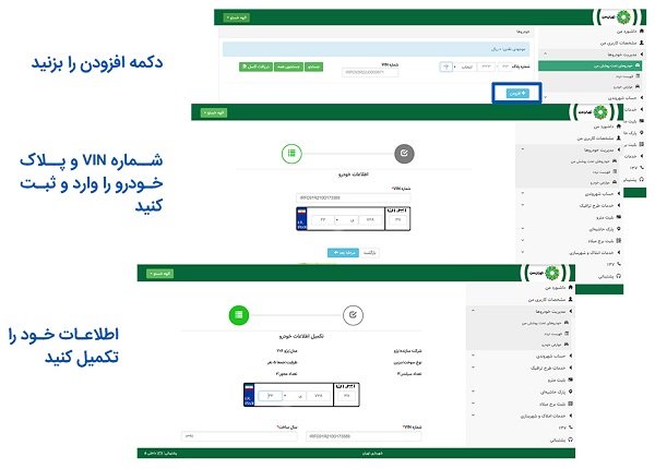 شما میتوانید در منوی مدیریت خودروها، در بخش خودروهای تحت پوشش من مراحل ثبت نام از طریق وبسایت را انجام دهید: