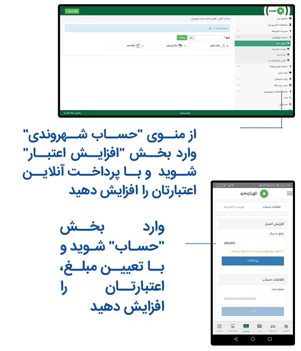 شما برای ورود به محدوده طرح ترافیک ابتدا باید حساب شهروندی خود را از طریق سامانه تهران من افزایش دهید تا دوربینهای محدوده طرح ترافیک ورود و خروج خودرو شما را ثبت کنند. در غیر این صورت شما یک ماه فرصت دارید مبلغ ورود به محدوده طرح ترافیک جدید را پرداخت کنید. همچنین به خاطر داشته باشید در صورت ثبت نکردن مشخصات در سامانه تهران من، هربار ورود یا خروج از محدودهی طرح ترافیک به معنی یک قبض جریمه خواهد بود.