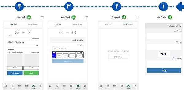ابتدا نرمافزار تهران من را روی گوشی تلفن همراه خود نصب کنید سپس مشخصات پلاک خودرو خود را در قسمت خودروها ثبت نمایید.