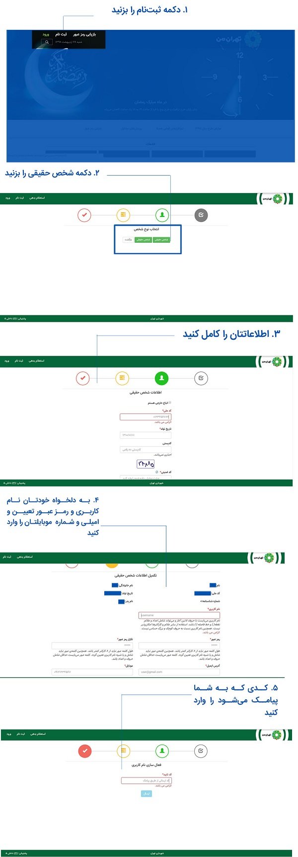 مراحل ثبت نام و دریافت مشخصات حساب کاربری