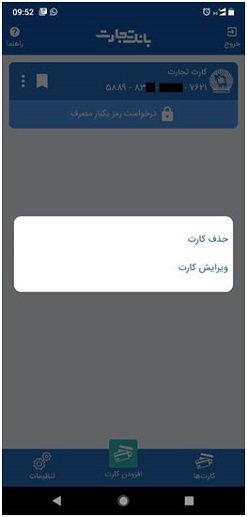 جهت حذف کارت یا ویرایش آن میتوانید با انتخاب گزینه اقدام کنید.