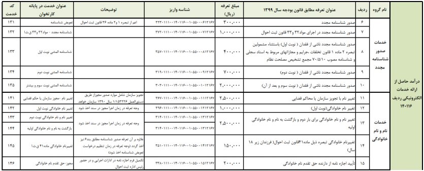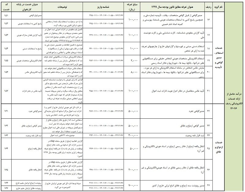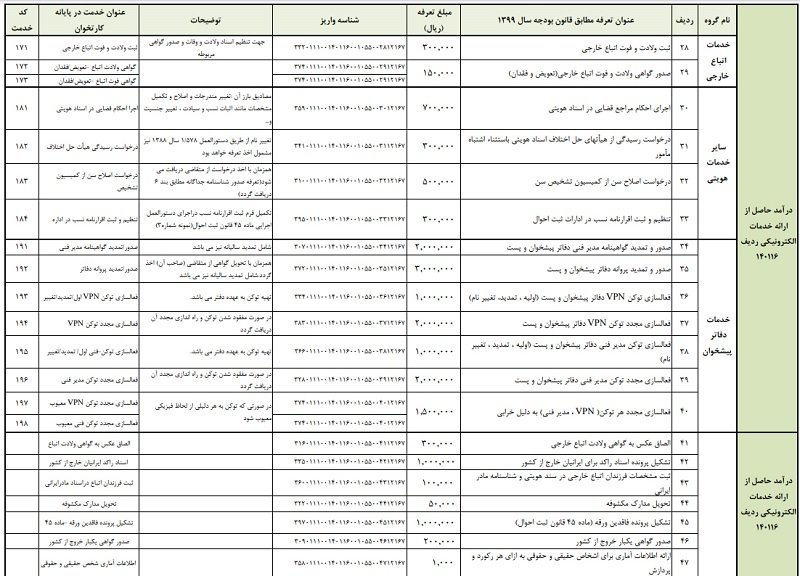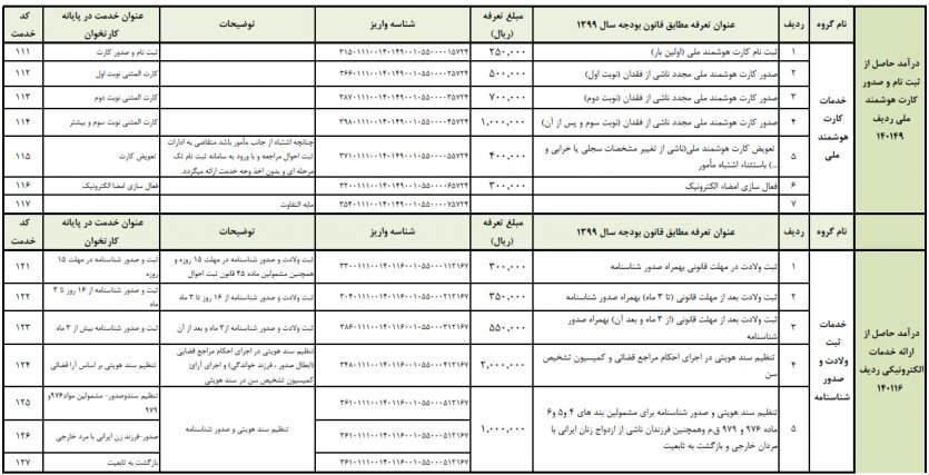 تعرفههای خدمات سازمان مطابق با قانون بودجه سال 1399