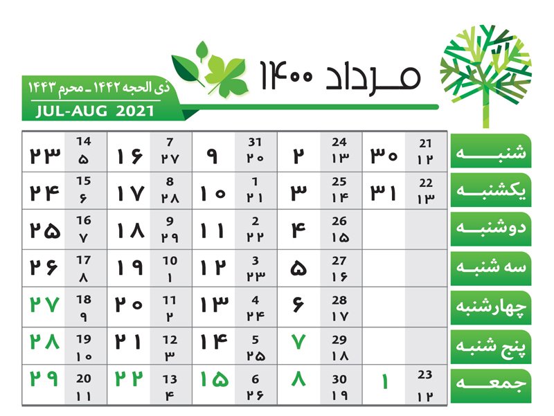 اطلاع از تعطیلات و مناسبتهای هر ماه از سال میتواند به برنامهریزیهایمان کمک کند. در این مطلب تقویم مرداد 1400 و مناسبتهای مختلف این ماه را مشاهده میکنید.