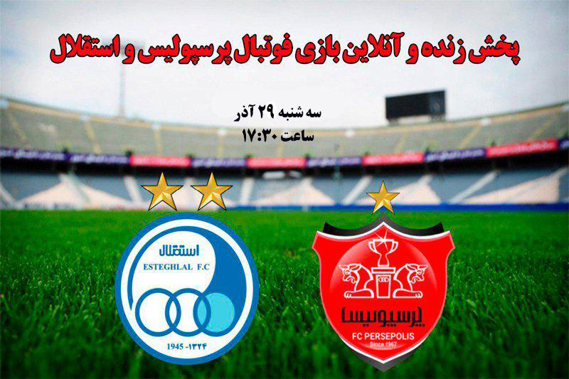 - پخش زنده و آنلاین دربی استقلال و پرسپولیس: شبکه سه از طریق سایت صدا و سیما