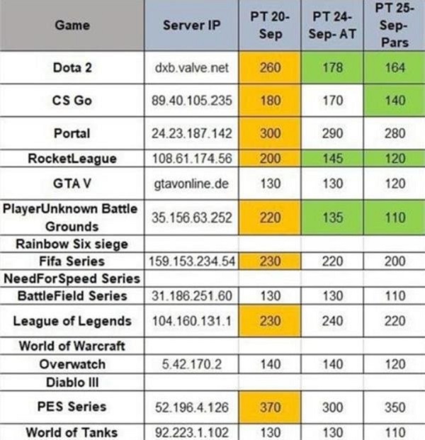 آذری جهرمی دراین باره نوشت: آخرین وضعیت بهبود شرایط بازیهای آنلاین در یک ماه اخیر به صورت فوق است. میزان پینگ در سه مقطع زمانی اندازه گیری شده و میزان بهبود مشخص است.