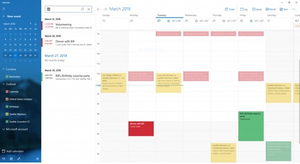 به عبارت دیگر بخشی از این قابلیتها همراه با بهروزرسانی پاییز در اختیار کاربران قرار خواهد گرفت. اما بیلد جدید موسوم به Build 17634 دو قابلیت جدید و تازه در اختیار کاربران قرار داده است. اولین قابلیت جدید معرفی شده از سوی مایکروسافت روی جستوجوی پیشرفته در برنامه تقویم متمرکز است. قابلیتی که به کاربران اجازه میدهد از طریق بهکارگیری کلیدواژهها جستوجویی در رویدادهای ثبت شده (در گذشته یا آینده) داشته باشند. این جستوجو بر مبنای فیلدهایی همچون نام، مکان، اسامی افرادی که نامشان در رکوردهای اطلاعاتی ضبط شده یا کلیدواژههای سادهای که بخشی از یک موجودیت هستند انجام میشود.