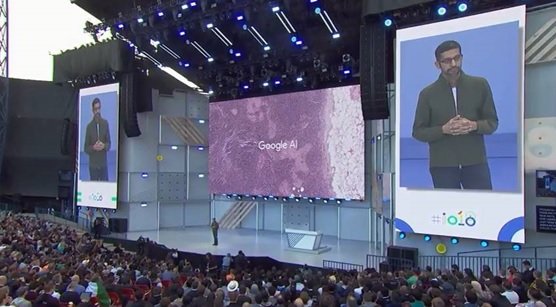 در ادامه این کنفرانس ساندرا پیچای به روی صحنه آمد و گفت: «هوش مصنوعی میتواند به بهبود تماسهای صوتی کمک زیادی کند. بهطور مثال دستیار صوتی گوگل میتواند برای شما تماس گرفته و برای رفتن به آرایشگاه برای شما وقت بگیرید. اجازه دهید مثال دیگری بزنم. بهطور مثال میخواهید در رستورانی میز رزرو کنید که شلوغ است، هوش مصنوعی به خوبی میتواند اینکار را انجام دهد. هوش مصنوعی به بهترین شکل اینکار را انجام میدهد. هوش مصنوعی به خوبی میتواند به هر سوال مسئول پذیرش پاسخ داده و میز را برای شما رزرو کند. اما قابلیتها میتوانند فراتر از این روند. بهطور مثال، از طریق یک تماس میتوان اطلاعات یک کسبوکار را در فضای مجازی تغییر داد تا به میلیونها کاربر اطلاعرسانی شود. این قابلیتها در هفتههای آینده در اختیار مردم قرار خواهد گرفت. ما احساس میکنیم به کاربران در زندگی دیجیتالی آنها بهتر میتوانیم کمک کنیم. دستیار صوتی گوگل از این پس میداند که مغازهها و شرکتها در روزهای تعطیل رسمی باز هستند. اگر مدت زمان زیادی از وقت خود را صرف یوتیوب کنید، دستیار صوتی اعلام میکند که زمان استراحت است. این رویکرد در ارتباط با نظارت بر کودکان به خانوادهها کمک میکند. یکی دیگر از موضوعاتی که ما به دنبال بهبود کیفیت آن هستیم ارایه اخبار است. اکنون انتشار اخبار در برههای سخت از زمان قرار دارد. ما سال گذشته Google New را معرفی کردیم. سرویسی که برای ارائه اخبار از منابع مختلفی استفاده میکند. ما از هوش مصنوعی برای بررسی کیفیت اخبار استفاده میکنیم. اکنون باید از Google News جدید رونمایی کنیم.»