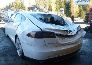 در قسمت پشتی نیز تمام این قسمت بر اثر سقوط درخت به شکل حرف V دچار له شدگی شده بود و شیشه عقب نیز کاملا شکسته بود، اما شیشه جلو خرد نشده بود. جالب اینجاست که با وجود صدمات جدی به جلو و عقب این اتومبیل، عمده سقف آن دست نخورده باقی مانده است. شرکت تسلا همیشه از استقامت اتومبیلهای خود در برابر تصادفات سخن میگفت، اما اکثر مباحث مطرح شده در مورد ایمنی مدل S طی چند هفته گذشته مربوط به سیستم جديد ناوبری خودکار آن بوده است.