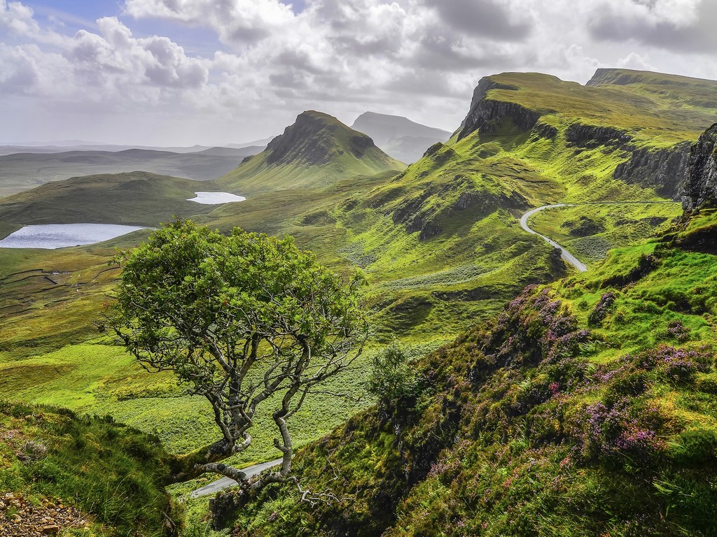 تیههای سبز با چشماندازی خیرهکننده در اسکاتلند.