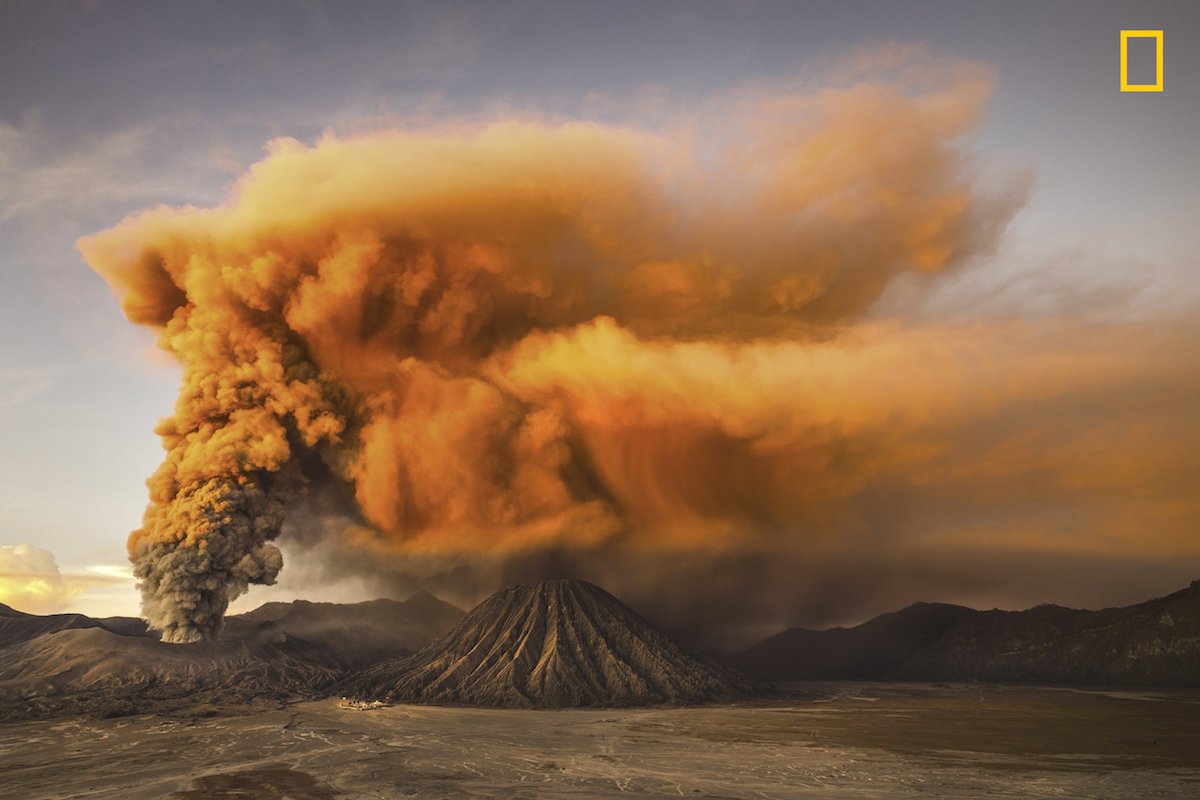 "کوههای آتشفشانی برومو در یک منطقه فعال در جاوه اندونزی قرار دارند. این عکس در سال 2016 و دقیقا زمانیکه فعالیتهای آتشفشانی این کوه افزایش یافته بود گرفته شده است."