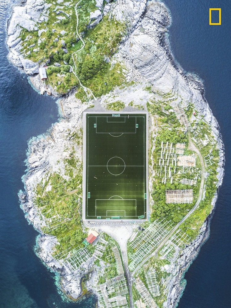 مقام سوم، دسته شهرها - "این زمین فوتبال در Henningsvaer در جزایر Lofoten یکی از اعجابانگیزترین مناطق اروپاست. وقتی به یک سفر دریایی 10 روزه در نروژ در ماه ژوئن 2017 رفته بودم این عکس را گرفتم. بعد از یک هفته دریانوری در هوای سرد و بارانی به Henningsvaer رسیدیم. وقتی به آنجا رسیدیم ناگهان هوا صاف شد. خیلی خوششانس بودم که شرایط برای بهپرواز درآوردن پهپاد مساعد شد و موفق شدم از ارتفاع 120 متری این عکس زیبا را بگیرم."