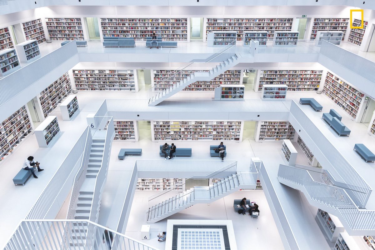 مقام اول، دسته شهرها - "فضای داخلی کاملا مدرن کتابخانه شهری در اشتوتگارت. فضای کاملا بازی در مرکز آن تعبیه شده و نور طبیعی از پنجرههایی که در بالای کتابخانه طراحی شده به داخل میتابد. فضای آن بسیار منحصربهفرد است و میتوانید بهراحتی سطح دانش خود را افزایش دهید."