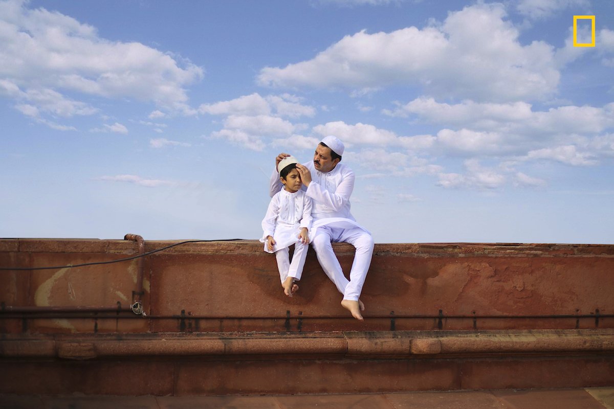 "یک عکس زبیا از پدر و پسری که در لباسهای سفیدشان در زیر آسمان آبی در روز عید فطر در مسجدی در دهلی نو نشستهاند. این عکس نشاندهنده یک ارتباط زیبا بین دو نسل است."