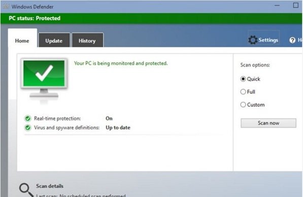دیفندر، مکانیزم محافظت در برابر بدافزارهای از پیش ساخته شده توسط مایکروسافت در این سالها به آرامی موفق شده است، شایستگیهای خود را به اثبات برساند و به نظر میرسد اکنون به اندازهای کارآمد شده است که در فهرست ما قرار گیرد. دیفندر مایکروسافت بهطور پیش فرض روی سیستم کاربران فعال بوده و به صورت بلادرنگ از آنها در برابر جاسوسافزارها و پنجرههای تبلیغاتی محافظت به عمل میآورد. همچنین به کاربران این توانایی را میدهد تا بنابر تشخیص خود آنرا غیر فعال کرده و از برنامه امنیتی مورد نظر خود استفاده کنند. سیستم نظارتی این نرمافزار به گونهای عمل میکند که در مواجه با موارد خاص به سرعت به کاربر اطلاع داده که باید وظیفه مهمی را انجام دهد، هشداردهی به گونهای انجام میشود که تداخلی در انجام وظایف جاری به وجود نیاورده و بدون آنکه هر پنج دقیقه یکبار یک پیغام آزاردهنده به کاربر نشان داده شود، او را مطلع میسازد. در حالی که دیفندر بهطور خودکار در پس زمینه اجرا میشود، اما به کاربر این توانایی را میدهد تا فرآیند پویش را به صورت زمانبندی شده انجام دهد. همچنین اگر به مورد مشکوکی برخورد کند، کاربر را از این موضوع مطلع میسازد.
