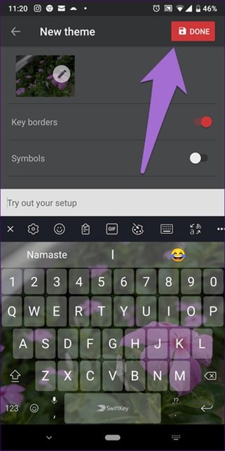 گام پنجم، اکنون به برنامهای باز گردید که صفحهکلید را به شما نشان میدهد. مشاهده خواهید کرد تصویری که انتخاب کردهاید در پسزمینه صفحهکلید قرار گرفته است.