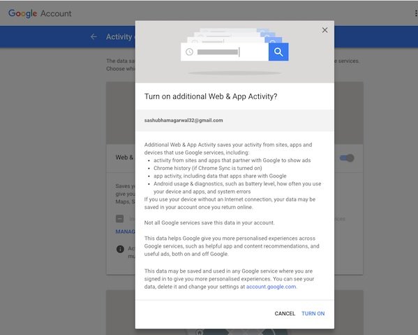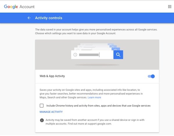 Web and App Activity: اگر این گزینه فعال باشد گوگل همه فعالیتهای مرتبط با سرویسهای این شرکت است را ذخیرهسازی میکند. در نتیجه موقعیت مکانی شما میان برنامههای کاربردی این شرکت به اشتراک قرار میگیرد. البته اینکار باعث میشود تجربه کاربری شما در زمان کار با برنامههای این شرکت سفارشیتر و بهتر شود، اما در مقابل ردیابی موقعیت مکانی شما را نیز به همراه دارد.