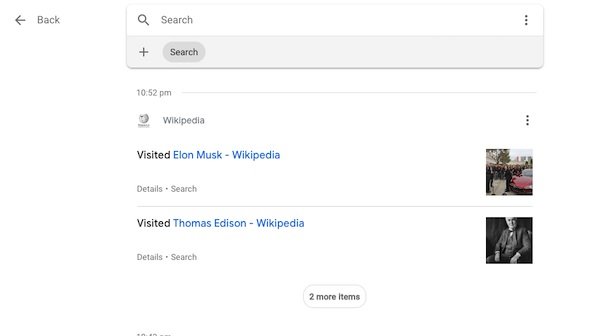 5. تاریخچه جستوجوها و صفحاتی که مشاهده کردهاید