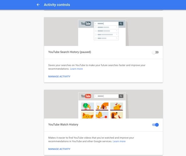 اگر با حساب کاربری خود از یوتیوب استفاده کرده و جستوجوهایی را روی یوتیوب انجام دهید، سوابق همه فعالیتهای شما با حساب کاربری شما یکپارچه شده و در اختیار گوگل قرار میگیرد. برای آنکه مانع انجام اینکار شوید در انتهای داشبور Activity Controls گزینههایی وجود دارند. برای حذف این مسئله به زبانه Delete Activity By رفته و تاریخچه ویدیوهای بازدید شده را پاک کنید. راهکار دیگر این است که از درون برنامه یوتویب به مسیر Settings> History & Privacy بروید.