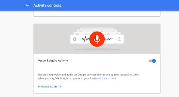 همه محاورهها و پرسشهایی ضبط شده با گوگل اسیستنت به شکل همیشگی روی سرورهای گوگل ذخیرهسازی میشوند. گوگل میگوید که اینکار برای بهبود کیفیت الگوریتم تشخیص صدای دستیار صوتی انجام میشود، اما اگر با این مسئله احساس راحتی نمیکنید، بهتر است آنرا غیرفعال کنید. گزینه غیرفعال کردن این موضوع در بخش Voice and Audio Activity داشبورد Activity Controls قرار دارد.