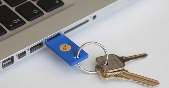 بسیاری از کاربران به دلایل مختلفی همچون اطمینان نداشتن به سرویسهای جانبی یا کمطاقت بودن به لحاظ دریافت کدها از طریق پیامهای کوتاه یا برنامههای کاربردی، تمایلی ندارند از آن سازوکار استفاده کنند. برای اینگونه کاربران گزینه دیگری وجود دارد. این تکنیک که البته هنوز متداول نشده است، بر مبنای کلیدهای احراز هویت فیزیکی کار میکند. این کلیدها که ظاهری شبیه به حافظههای فلش دارند و بهراحتی در کنار کلیدهای خانه و ماشین در جاسوییچی قرار میگیرند، بهآسانی قابل استفاده هستند. شیوه کارکرد آنها به این شکل است که در زمان ورود به حساب کاربری از طریق یک کامپیوتر جدید، این کلید USB را به سامانه کامپیوتری خود متصل میکنید و دکمهای را که روی آن تعبیه شده است، فشار میدهید. شکل 3 نمایی از این کلید را نشان میدهد. با توجه به استقبال کاربران از این مکانیزم، تعدادی از تولیدکنندگان تصمیم گرفتهاند استاندارد U2F را برای این کلیدها پیشنهاد کنند. شایان ذکر است شرکتهایی همچون گوگل، دراپباکس و گیتهاب از مدتها پیش سرویسهای متعلق به حساب کاربری خود را با توکن U2F سازگار کردهاند.