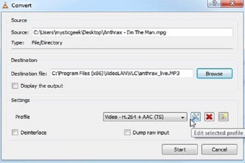 حال بخش Audio Codec را انتخاب و علامت تیک گزینه Audio را بردارید. تنظیمات را ذخیره کنید و در حالی که به صفحه قبل بازمیگردید، مقصد مربوط به فایل را پر کنید و سپس روی دکمه Start کلیک نمایید. فایل ویدیویی به مقصد انتخاب شده، تبدیل و ذخیره میگردد.