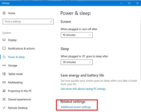 در ادامه روی لینک Additional power settings کلیک کنید.