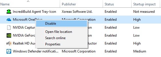 این گزینه بهطور کامل اجرای برنامه را متوقف نمیکند، اما مانع از آن میشود تا در زمان آغاز به کار ویندوز اجرا شوند. هر زمان که به اجرای این برنامهها نیاز داشتید، کافی است Task Manager را انتخاب کرده و در زبانه فوق روی برنامه موردنظر کلیک راست کرده و گزینه Enable را انتخاب کنید.