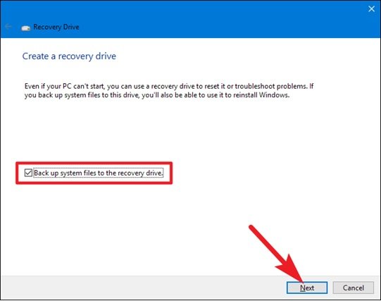 در پنجره Recovery Drive اگر گزینه Back up system files to the recovery drive را انتخاب کنید فرآیند ساخت درایو بازیابی کمی بهطول خواهد انجامید، به واسطه آنکه فایلهای سیستمی موردنیاز روی حافظه فلش قرار میگیرند، اما در پایان شما درایوی در اختیار خواهید داشت که به شما اجازه نصب مجدد ویندوز را نیز میدهد.