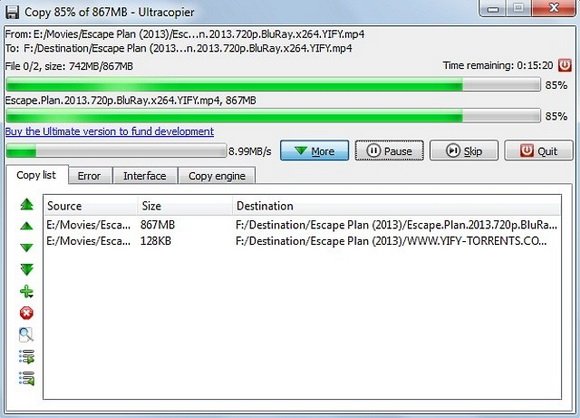 همچنین با Ultra Copier شما میتوانید چندین فایل را به طور همزمان منتقل کنید. سرعت انتقال در این نرم افزار نیز بهینه سازی شده است.