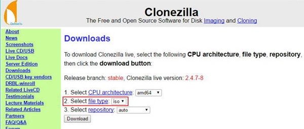 1- کلونزیلا را دانلود کنید. بهتر است نسخه Stable را دانلود کنید.