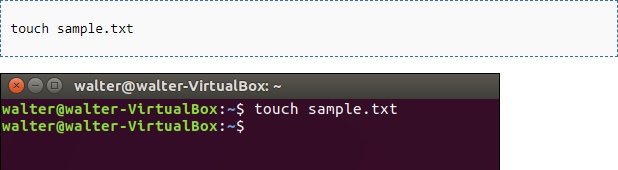برای ساخت یک فایل جدید، دستور زیرا را در اعلان ترمینال تایپ کنید (بهجای "sample.txt" هر نامیکه برای فایلتان درنظر دارید را قرار دهید)، و سپس کلید Enter را بزنید: