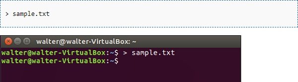 میتوانید با علامت (<) یک فایل متنی بسازید. اگر آنرا بدون دستور دیگری استفاده کنید، یک فایل جدید ساخته میشود. با این روش هم مانند دستور Touch نمیتوانید متنتان را بهسرعت وارد فایل کنید. اما، برخلاف دستور Touch، با این روش امکان ساخت چندین فایل وجود ندارد.