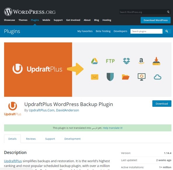 با استفاده از افزونه UpdraftPlus قادر هستید یک نسخه پشتیبان کامل تهیه کرده و این نسخه را به فضای ابری انتقال دهید. البته رابط کاربری آن کمی پیچیدهتر از نمونههایی است که به آنها اشاره شد، اما فراموش نکنید که نسخه رایگان آن نیز قابلیتهای قدرتمندی در اختیار شما قرار میدهد. از ویژگیهای این افزونه میتوان به پشتیبانی از تم، افزونهها و عناصر آپلود شده، سرعت بالا و کم بودن فضای مورد استفاده، امنیت بالای پشتیبانهای گرفته شده و... اشاره کرد.