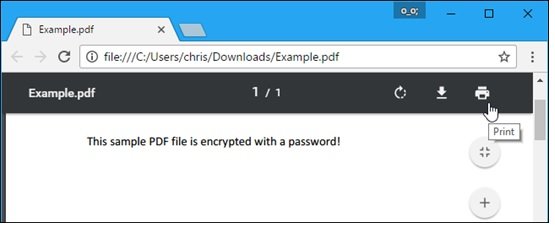 این راهکار ممکن است کمی دور از انتظار باشد، اما شما برای حذف گذرواژه از یک فایل پیدیاف میتوانید آنرا باز کرده و یک کپی از آن تهیه کنید. فایلی که به این شکل کپی میشود فاقد گذرواژه خواهد بود. البته این تکنیک تنها زمانی کار خواهد کرد که محدودیت کپی یا چاپ روی فایل پیدیاف فعال نشده باشد. با این وجود، بیشتر فایلهای پیدیاف که دریافت میکنید تنها از طریق گذرواژه محافظت شدهاند و در نتیجه شما با یک کپی ساده قادر هستید گذرواژه آنها را بردارید. برای پیادهسازی این تکنیک اگر از مرورگر کروم در سیستمعاملهای ویندوز، مک یا لینوکس استفاده میکنید ابتدا فایل پیدیاف را باز کرده و گذرواژه را درون آن وارد کنید. در ادامه گزینه Print را از درون نوار ابزار پیدیاف انتخاب کنید تا بتوانید پیدیاف را چاپ کنید.